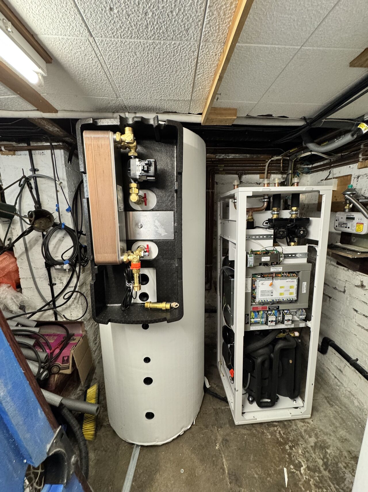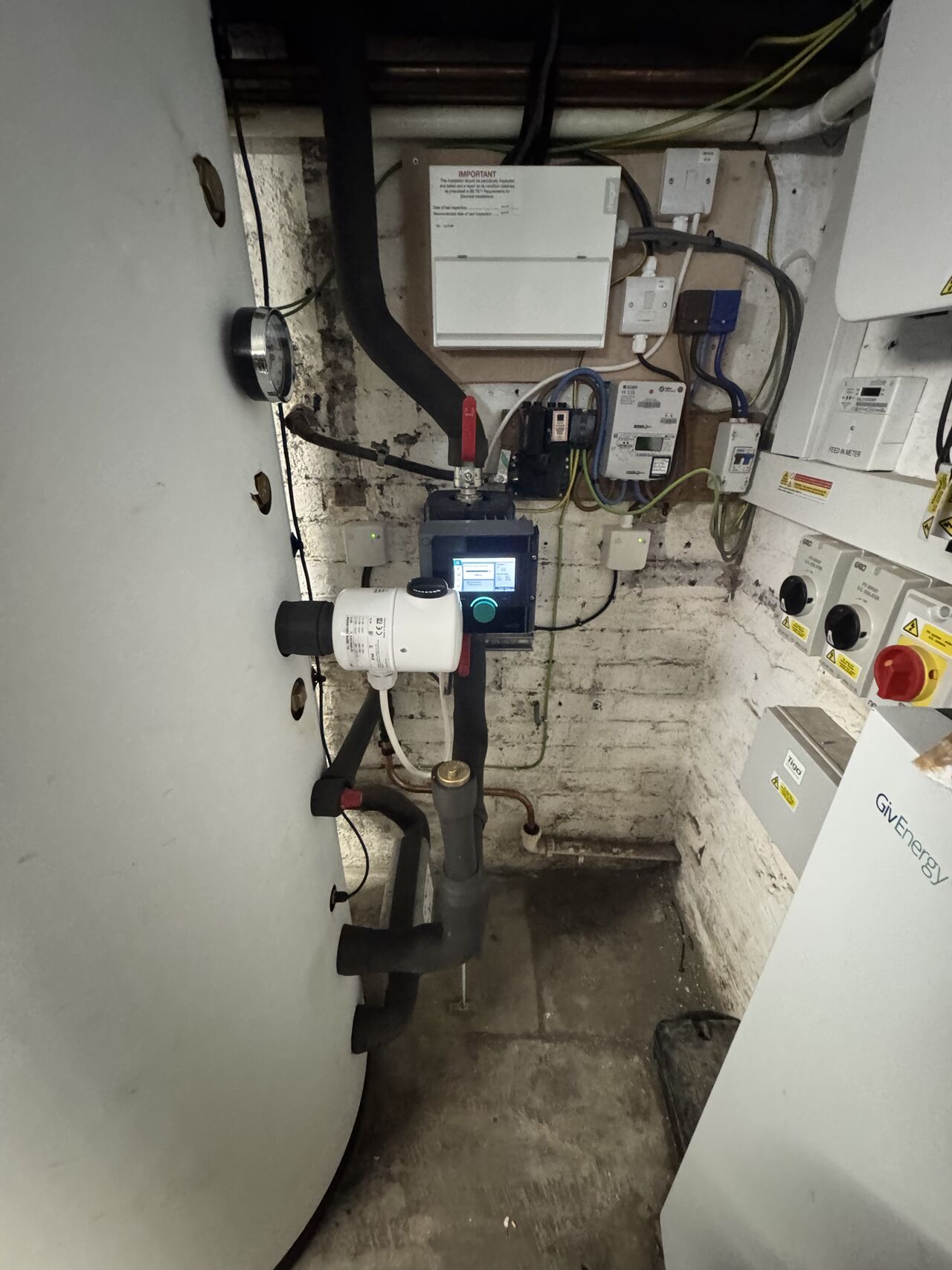 Single phase 100amp, so choice was limitied Designing without a full repipe over the four floors - 42mm primaries ran on the basement floor to split the load, then using existing 28mm up on the first floor and second floor. Pump selection, running different pipe runs to see what estimated resistance I have and settled with the Wilo Maxos which is my favourite by far pump out there. Control strategy, balancing system performance with non excessive energy use. Eventually settled with a buffer and Evo home running the secondary pump, Heatpump is running via buffer sensor only and either side don’t interact. How water - house was split into two before, Combi and direct cylidner. We opted for a fresh water module, so it late loaded hot water via another 500l buffer. Radiator selection, in keeping with the house build cast irons were preferred but with Heatloss we couldn’t do it everywhere. So we settled for downstairs with cast rads and then k3 radiators upstairs to satisfy a 50° flow temp. Expansion I chose 4x 18l Staticos and charge pressure of 1.5 because of head height. Best vessel on the market in my opinion, no idea why anyone would use any other vessel.